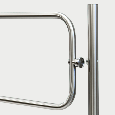 At normal operation the BH-02 rotary section is used as a railing section to complete a passage area. When needed, the section can be opened in any direction without use of special tools or keys, by pulling the locking pin.
