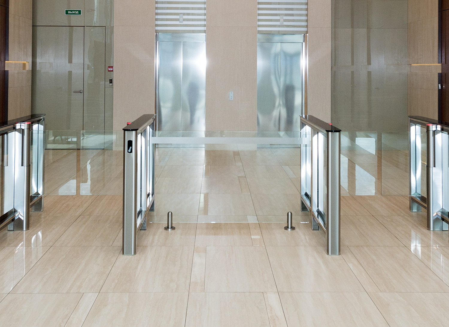 The BH06 railings are manufactured in the same design as PERCo turnstiles and gates made of stainless steel and tempered glass, e.g., speed gates and motorized swing gates with a glass swing panel.