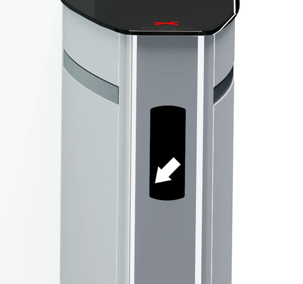 ST-02 Speed gates allow installing readers and controllers under the section top covers. The zones for presenting cards are indicated with the corresponding pictograms.