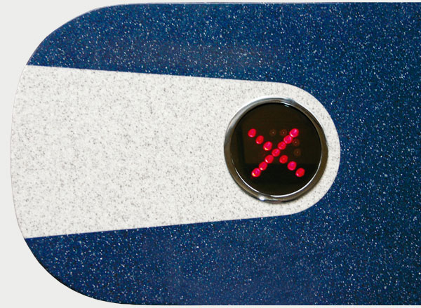 Two LED directional indicators with bright pictograms are located on the top cover as standard: Green Arrow indicates that the turnstile is unlocked to permit a passage and shows the direction of authorised passage; Red Cross indicates that passage is not allowed and shows that the turnstile remains in locked status.