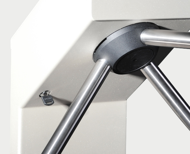 A key override allows an operating technician to unlock both directions of the TTR-04.1 turnstile if there is need to override an access control system or in case of emergency or power failure. The mechanical release lock is built into the turnstile housing as standard and provides free rotation of the barrier arms.
